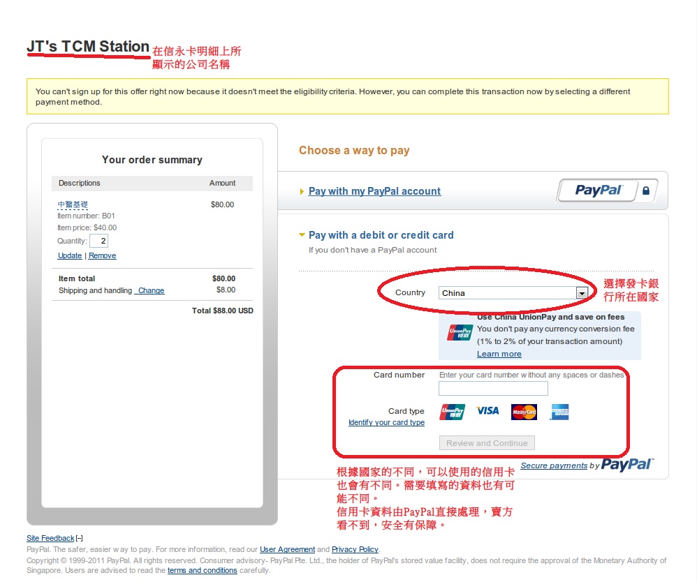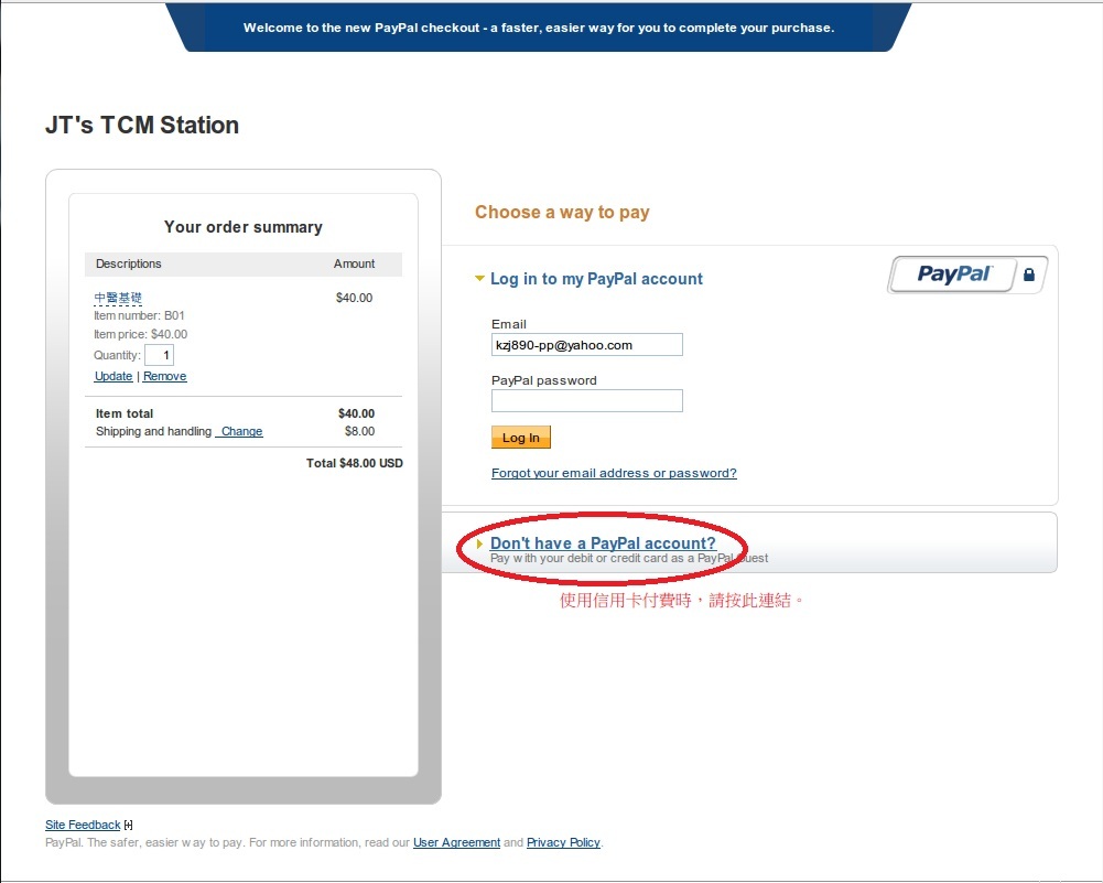 第二步:選擇使用信用卡付款